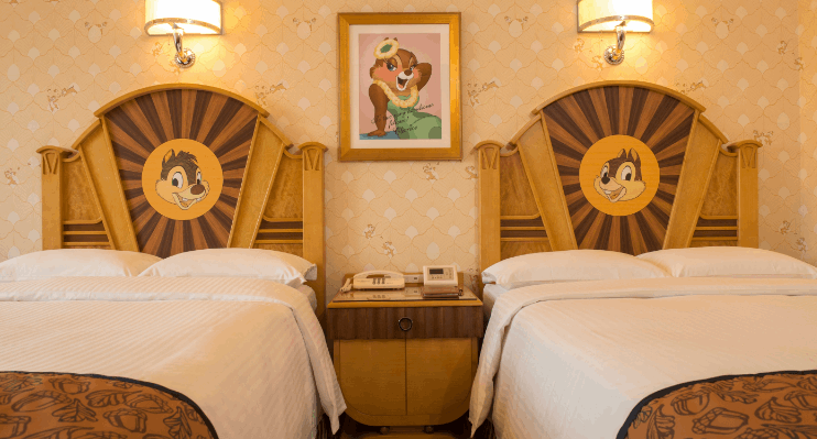 「ミッキーマウスルーム」、「ミニーマウスルーム」、「ドナルドダックルーム」、「チップとデールルーム」、「スティッチルーム」があって大人気です。