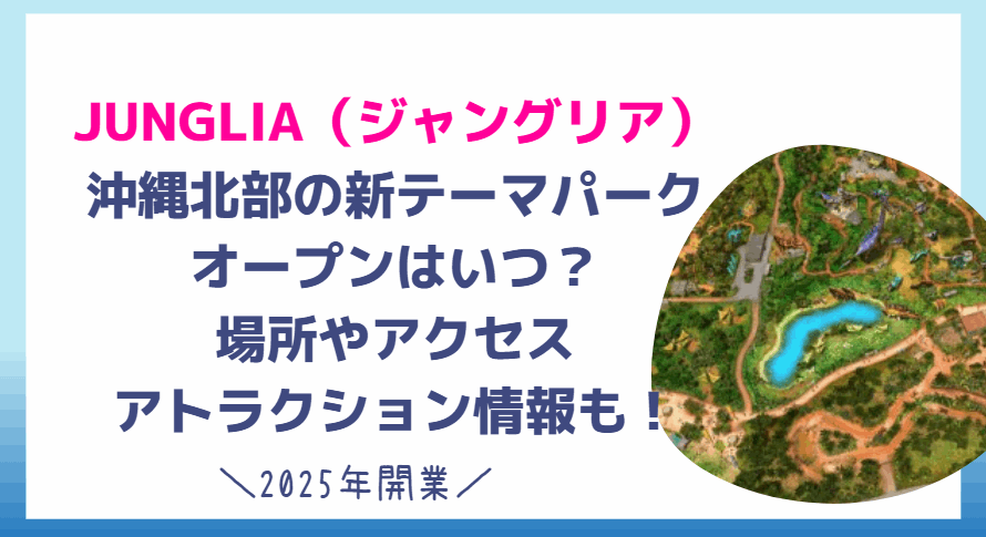 - 沖縄テーマパークJUNGLIA(ジャングリア)2025の開業はいつを予定しているのか?